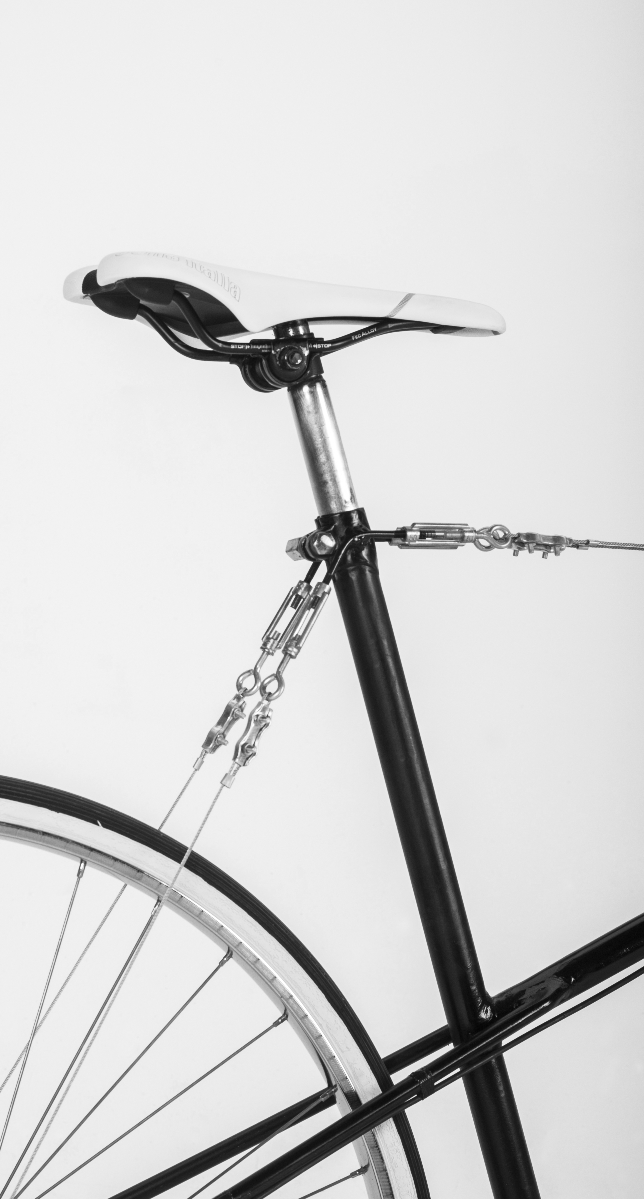 Die Geschichte dieses Drahtesels ist auch eine Biografische: Zu Beginn meines Studiums hörte ich mit großer Begeisterung die Vorlesung zur Tragwerkslehre im Fachbereich Architektur. Besonders gefielen mir die gezeigten Beispiele für leichte Tragwerke, die mit wenig Materialeinsatz präzise ihre Aufgaben erfüllten. Diese Konstruktutionen regten meine Fantasie an. Ich bemerkte, wie sich meine Wahrnehmung veränderte und ich sozusagen „automatisch“ damit begann meine Umwelt nach Kräfteverläufen abzuscannen. Wo wirkten Druck- und Zugkräfte, wo Torsion und Biegemomente? Könnte dieses, oder jenes Bauteil nicht viel schlanker ausgestaltet werden? Was würde passieren, wenn man es wegließe?