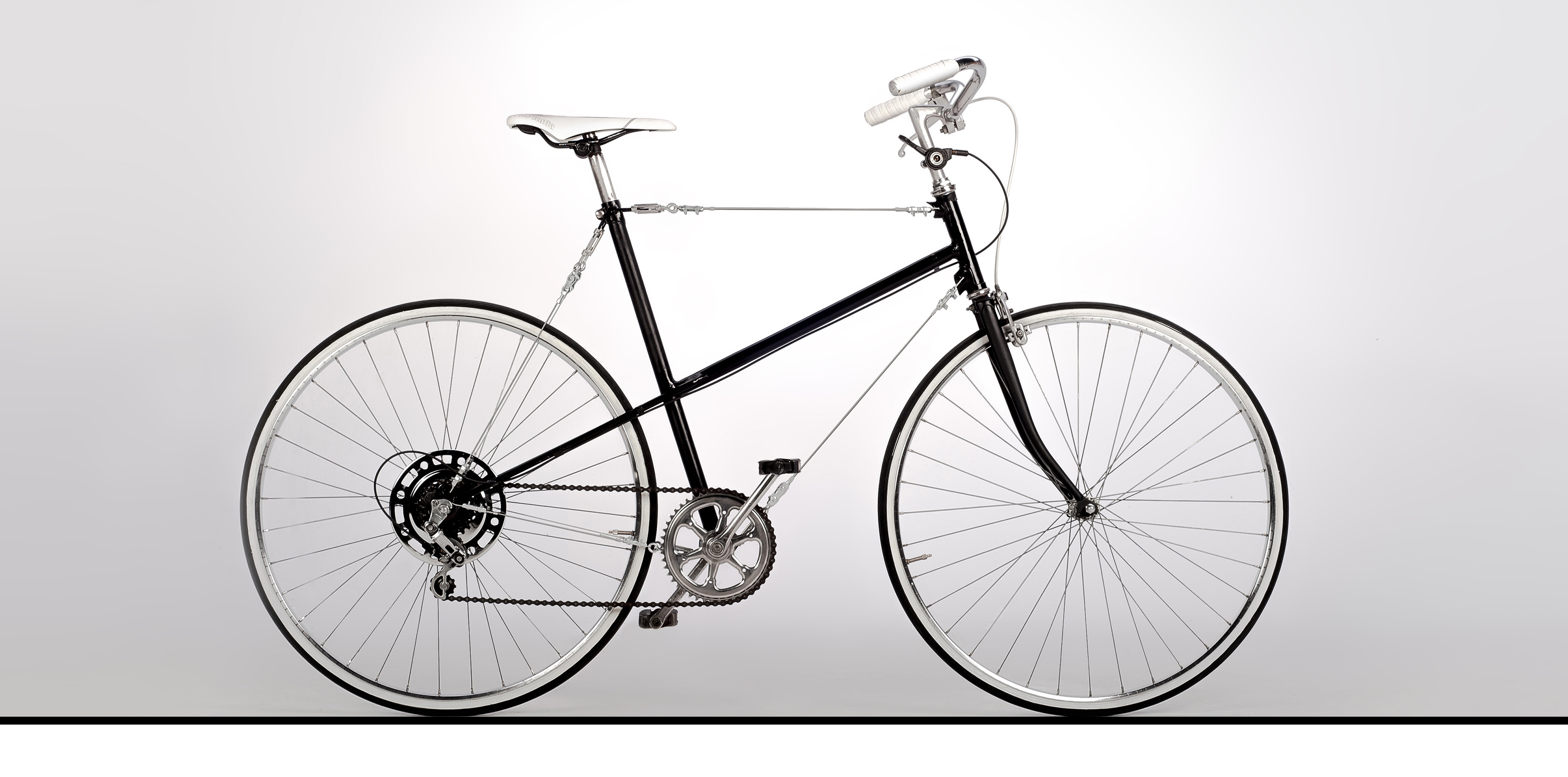 Als großer Fahrradfan warf ich meinen neu geschulten Blick natürlich auch auf meine Lieblingsmaschine – das gute alte Vélo. Und siehe da, hier war ein super Übungsbeispiel gefunden. Ein klassischer Fahrradrahmen lässt sich kaum mehr vereinfachen, stellt vielleicht – aller modischen Abweichungen zum Trotz – bereits eine Art Idealform dar, aber trotzdem ließen sich hier einige für mich interessante Überlegungen anstellen.