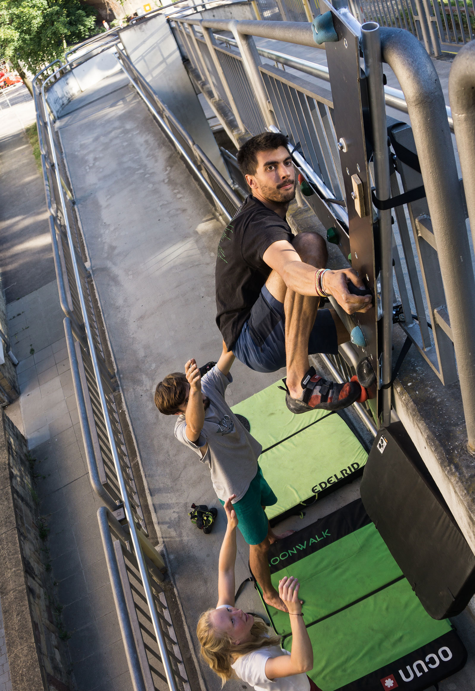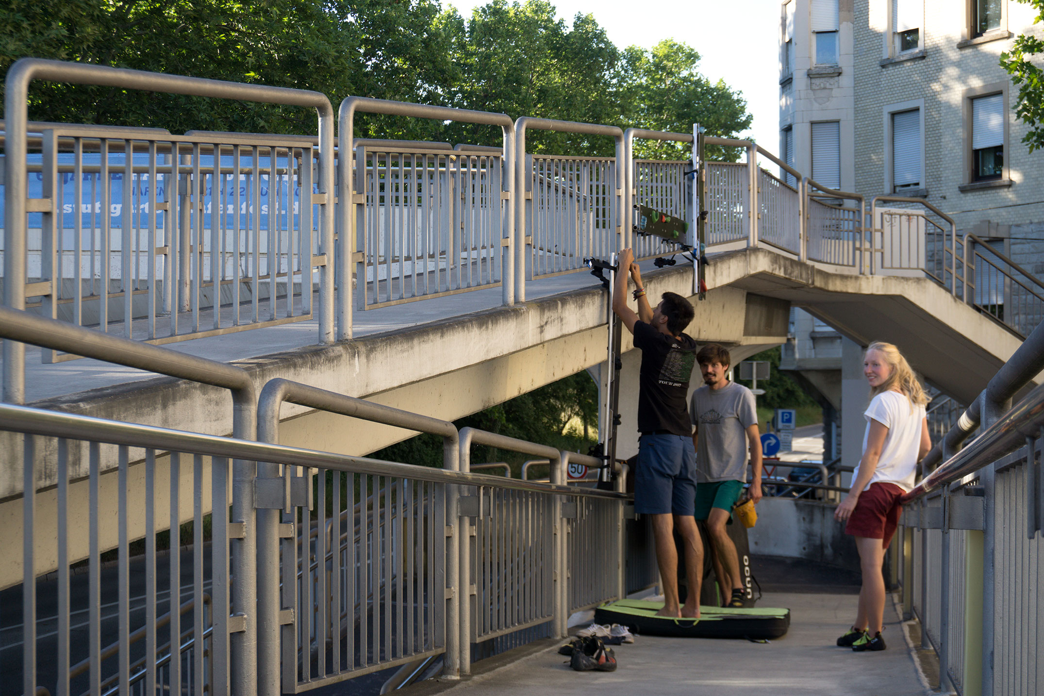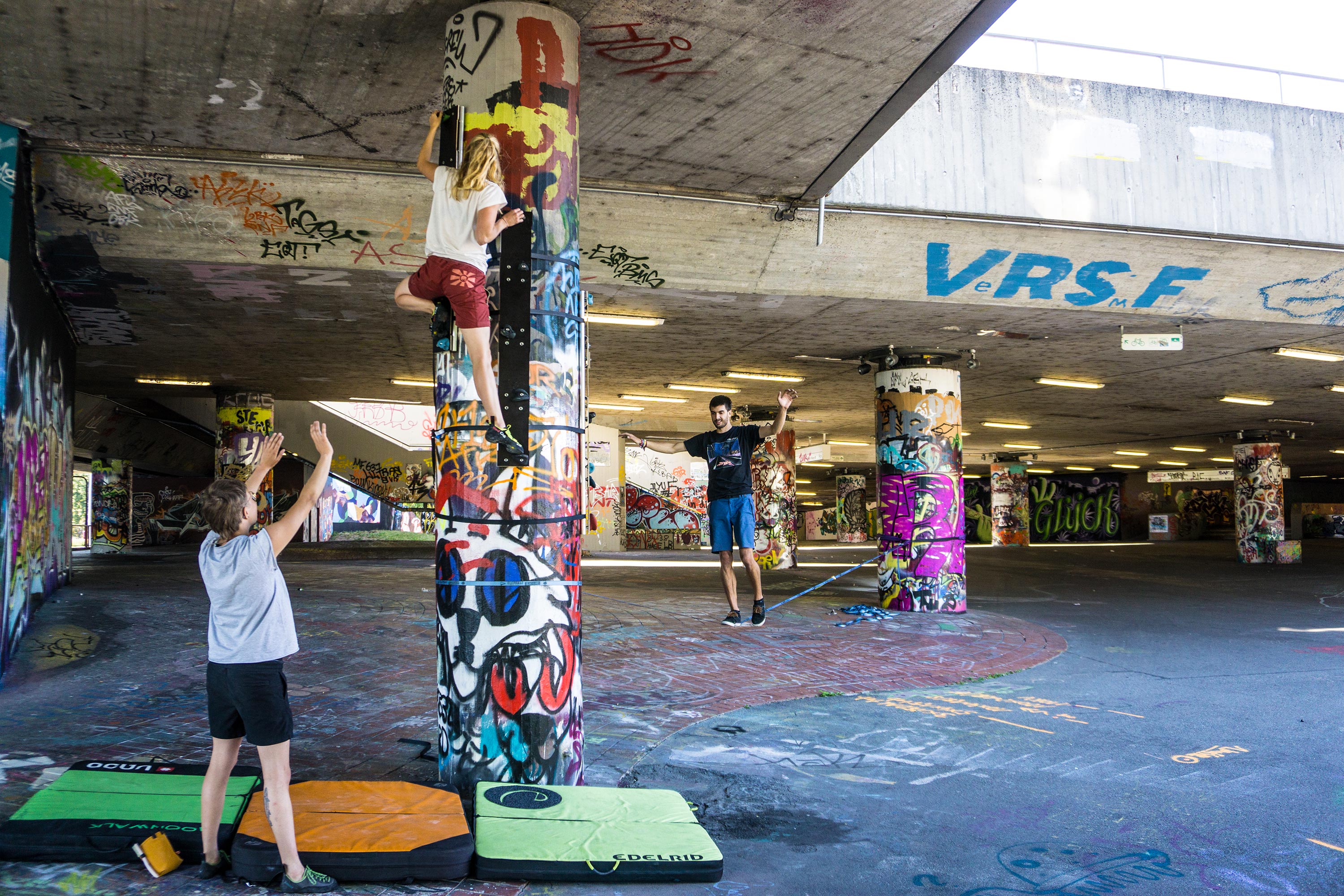 Anders, als beim Besuch einer Boulderhalle, in der alles extra für‘s Bouldern gemacht ist, Routen extra geschraubt und mit einem Farbcode schnell erkennbar markiert, anders als „inside the box“ galt es im freien, öffentlichen Raum auf einmal wieder selbst kreativ zu sein. Die Umgebung mit neuen Augen zu betrachten und sie zum Spielen umzunutzen.